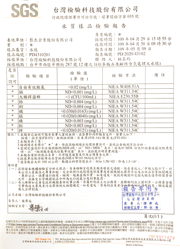 - fine bubble氫氧飲水機經SGS檢測飲用水,出水水質,水中有無有害重金屬、水中餘氯及大腸桿菌的檢測報告,檢查出來的項目數值,全部是低於政府規定,而且還低於檢測儀器最低數值標準,因此飲用是安全無虞的
