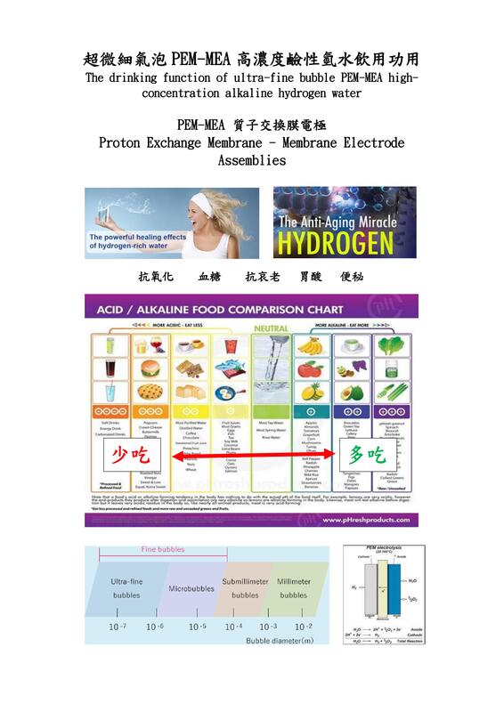 超微細氣泡鹼性氫分子水素水可降低胃酸,及提供水中氫分子,對食用含氫錠劑可增加其吸收效果,經常飲用鹼性水素水,依日本研究可抗氧化活化細胞促進腸蠕動,利於排泄,預防並改善便秘。